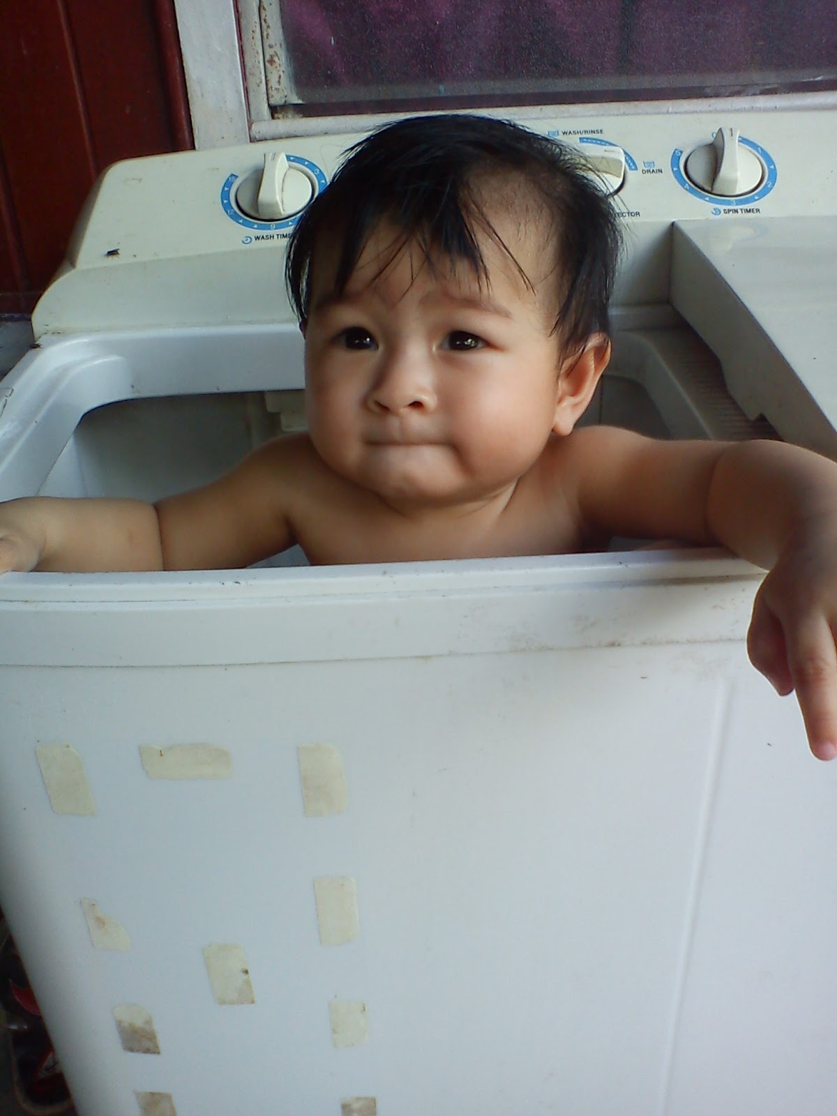 mama nie memang suke dengki budak kecik nie.rayyan pun macam relakan jek mama buli die hehe..kali nie mama masok kan rayyan dalam mesin basuh plak hahaha...time nie rayyan nak mandi